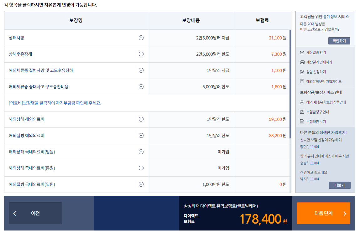 이걸로 복잡하게 생각하고 싶지 않아 '국내 의료비' 항목을 제거하고 바로 결제!