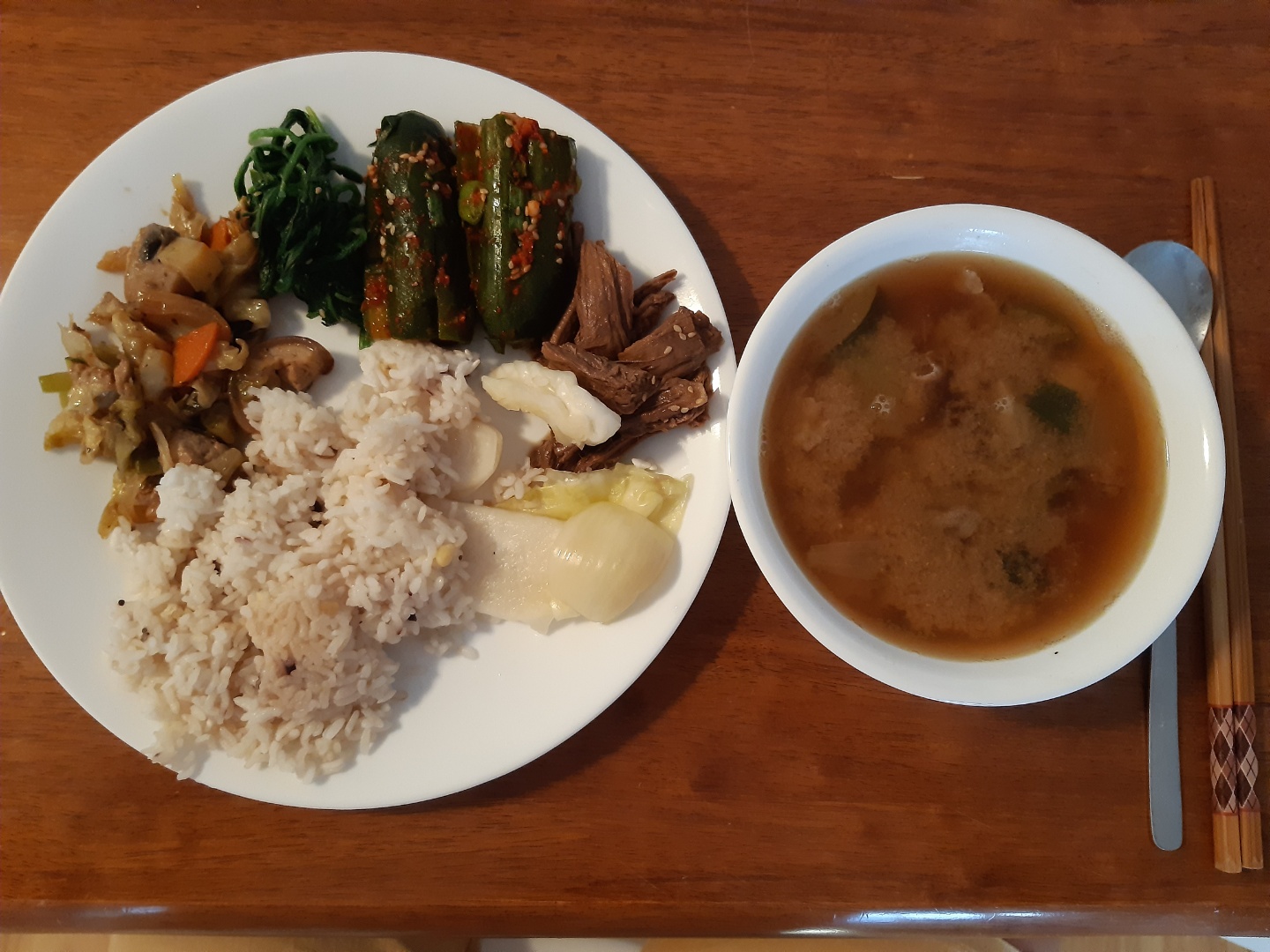 덕분에 내 한상차림이 푸짐해졌다. 국은 절친의 지인이 선물해준 차돌박이 된장찌개. 이 타지에서 오이소박이와 시금치나물, 장조림, 된장국을 먹을 수 있다니. 나는 참 인복이 많은 사람이구나 새삼 느끼며 더 감사하게 살아야겠다는 생각을 했다. 근데 밥이 마음처럼 잘 안되서 심란.